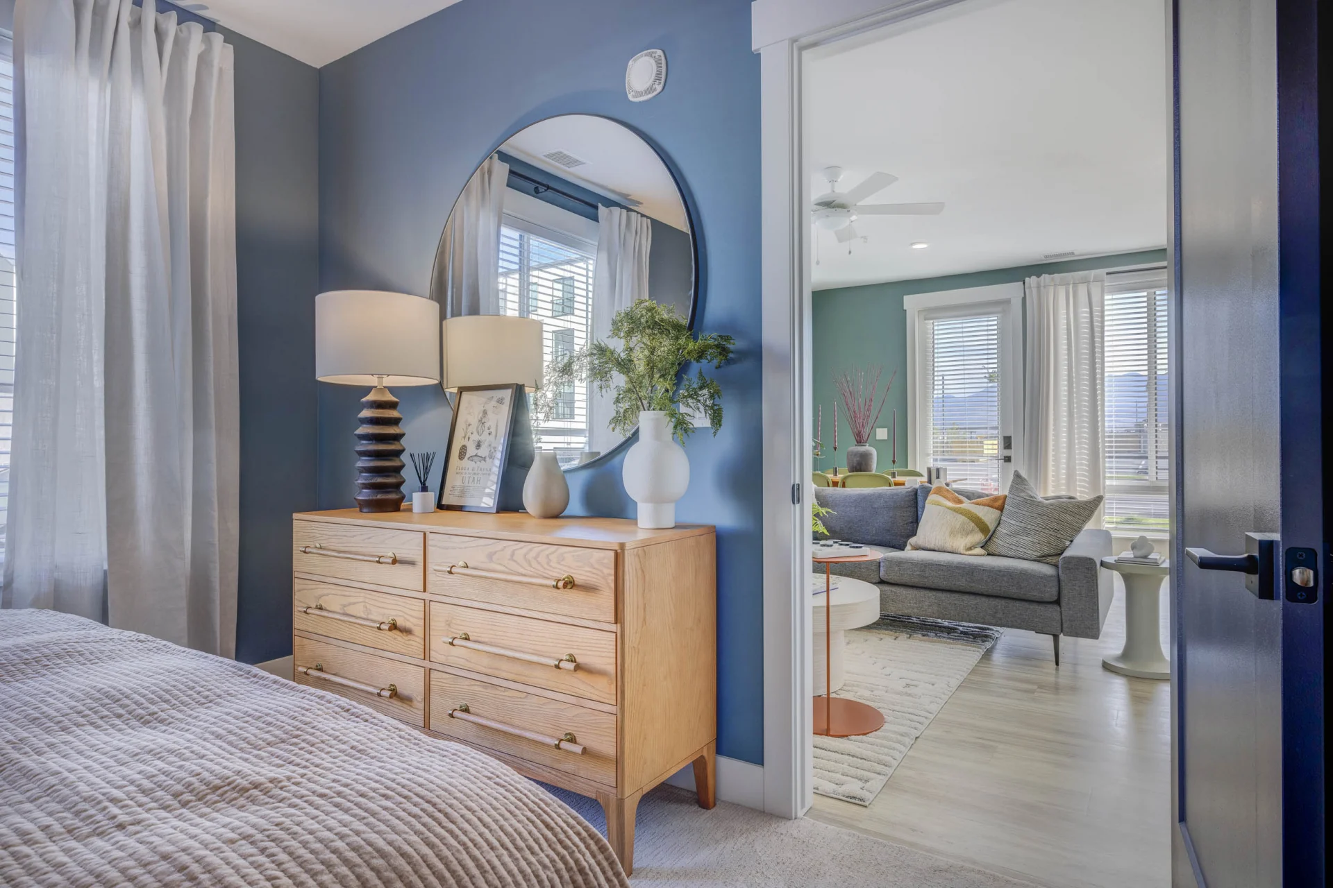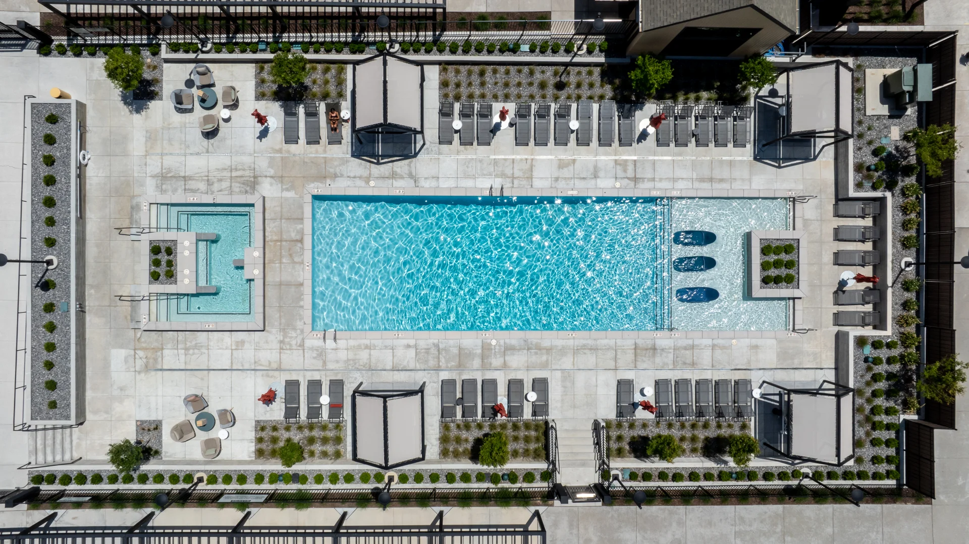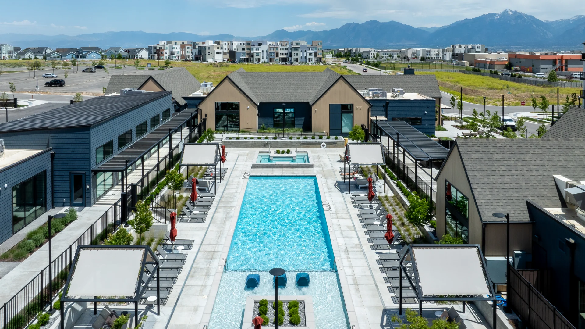 NOVEL Daybreak, situated on the edge of South Jordan’s Daybreak community, is comprised of four separate 4-story residential buildings of various sizes. A mix of studio, one-, and two-bedroom residences are offered with airy interiors and elevated contemporary details often reserved for homeowners. NOVEL Daybreak brings high-end finishes, including quartz countertops and stainless-steel sinks, modern white-panel Euro-style cabinetry with open shelving and full pantries, large kitchen islands with designer pendant lighting plus more for the rental market.