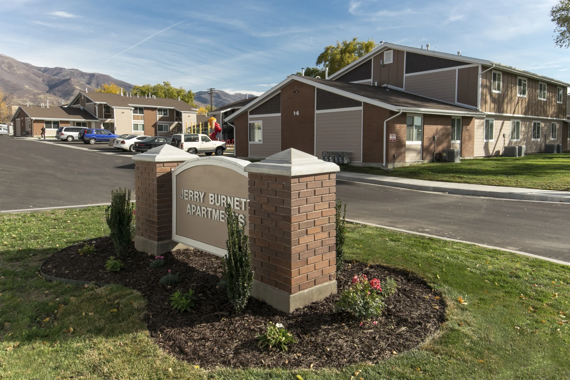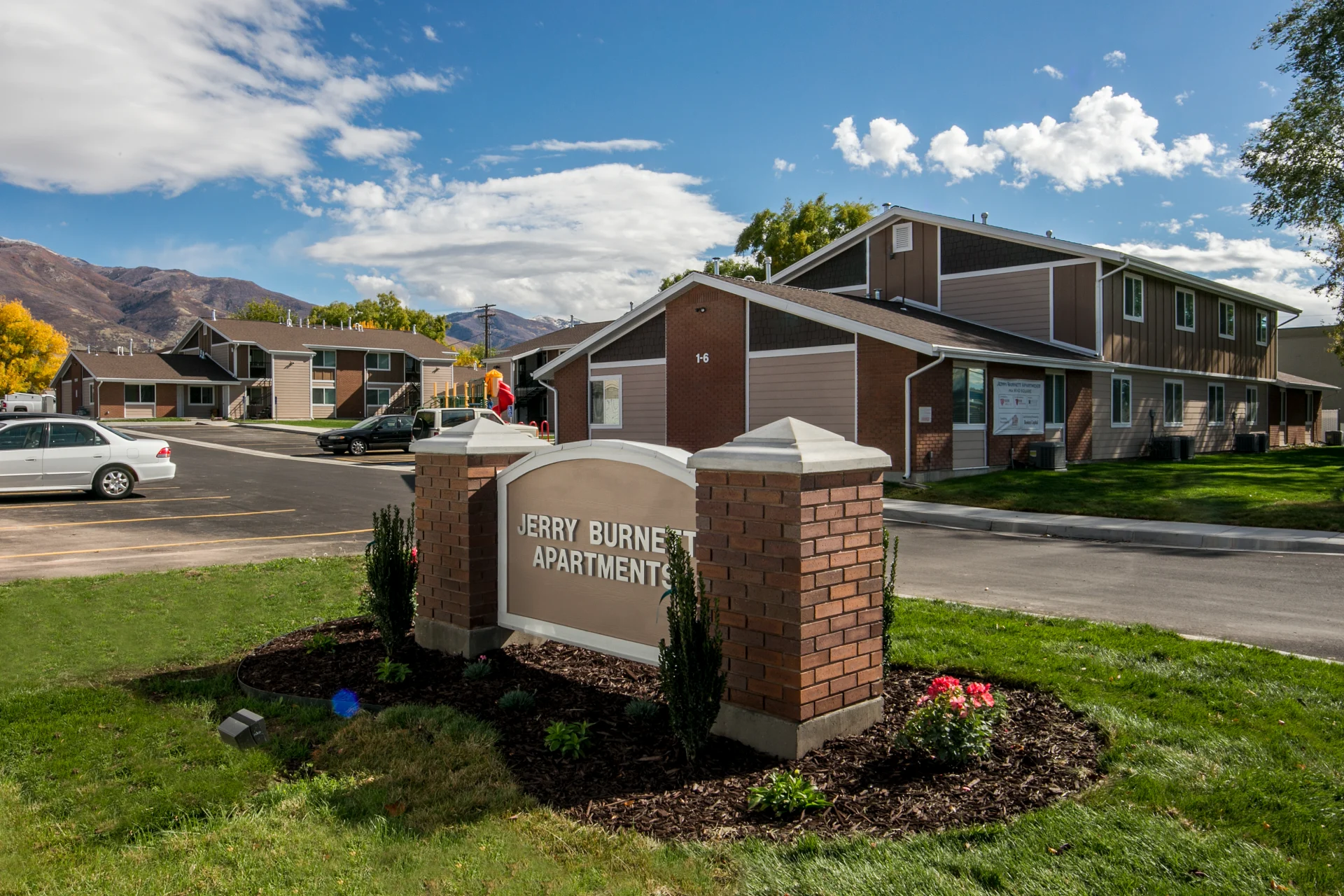 Jerry Burnett Apartments is a 25 unit multi-family property which consists of 4 one-bedroom, 18 two-bedroom and 3 three-bedroom units divided between five buildings. This property is assisting Utah by providing affordable housing to low, very low and extremely low income families.